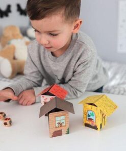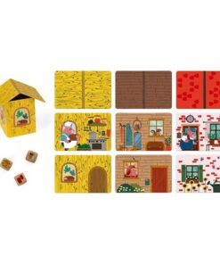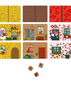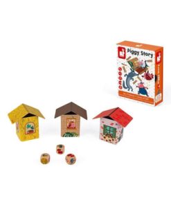 Gra zręcznościowa Trzy świnki francuskiej marki JANOD to wspaniała zabawa dla dwóch do sześciu osób – zarówno dzieci, jak i dorosłych. Zestaw zawiera 54 karty, wykonane z solidnego kartonu, z których buduje się ściany (36 kart) i dachy (18 kart) domków dla świnek – zgodnie z rysunkami na kartach – ze słomy, drewna lub cegły. Przebieg gry wyznaczają rzuty 3 drewnianymi kostkami. Gracze mają za zadanie zbudować trzy domki, każdy z innego materiału, wykazując się sprytem i unikając wilka, który może im te domki zdmuchnąć. Czasami jednak sami się w wilka wcielają, próbując zdmuchnąć domki przeciwników. Wygrywa gracz, który jako pierwszy ukończy budowę wszystkich trzech domków.