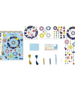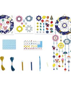W zestawie znajdują się ponadto: arkusz z naklejkami, arkusz z elementami z pianki, dwa motki muliny, bezpieczna plastikowa igła, dwie tubki z brokatem oraz szpatułka, ułatwiająca odklejanie papieru, w miejscach, które chce się nim ozdobić. Wybrane elementy należy przymocować na sznurkach, tworząc bajeczne, połyskujące dzieło. Nawlekanie czy ozdabianie brokatem to dla dziecka długie godziny angażującej i jednocześnie uspokajającej zabawy.