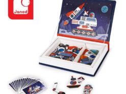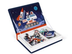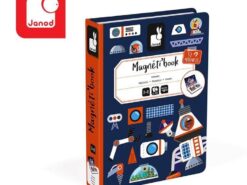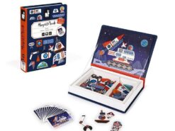 Magnetibook Kosmos z bestsellerowej linii Magnetibook zawiera 52 magnesy (utrzymane w czerwono – biało – niebieskiej kolorystyce), które stanowią części składowe do stworzenia pojazdów kosmicznych, astronautów, rakiet, satelit i innych elementów pozaziemskiej przestrzeni oraz 18 kart z ilustracjami, na których można się wzorować przy tworzeniu własnych kosmicznych historii. Magnesy pozwalają również na układanie wymyślonych przez siebie konstrukcji. To świetna rozrywka dla małych miłośników kosmosu, a także wszystkich twórczych dzieci.
