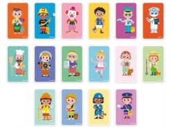 Zestaw Zawody z bestsellerowej linii Magnetibooków zawiera 64 kolorowe magnesy z częściami ciała (głowy, tułowia, nogi), elementami strojów służbowych i charakterystycznymi detalami (jak szpadel, poziomica czy hydrant), potrzebnymi do stworzenia przedstawicieli różnych zawodów, w tym m.in. piekarza, policjantki, listonoszki, piłkarza, astronauty, opiekunki do dzieci czy lekarza.