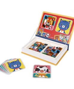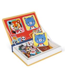 Magnetibook Puzzle zwierzątka z bestsellerowej linii Magnetibook zawiera 72 kolorowe magnesy – puzzle z elementami do stworzenia 9-elementowych portretów uroczych zwierzątek, m.in. kota, pandy, krówki czy tygrysa oraz 8 kart z ilustracjami tych postaci. Magnesy pozwalają również na ułożenie wymyślonych przez siebie stworzeń. To świetna rozrywka dla małych miłośników zwierząt, a także wszystkich twórczych dzieci.