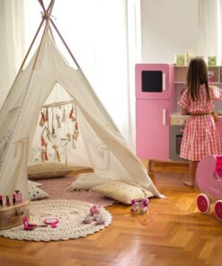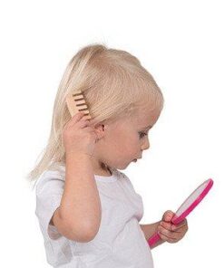Wszystkie elementy wykonane zostały z drewna i pomalowane bezpiecznymi dla dzieci farbami. Są precyzyjne i bardzo estetyczne, a zabawa nimi to sama przyjemność, zwłaszcza dla dziewczynek, które lubią naśladować swoje mamy – pomaga im oswajać się z codziennością i przyswajać zasady społecznych zachowań.