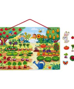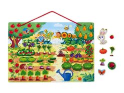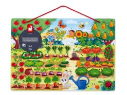 Magnetyczna układanka Mój magiczny ogród to doskonała zabawka, rozwijająca kreatywność i wyobraźnię. Zabawa polega na układaniu magnesów na dużej drewnianej planszy z ilustracją ogrodu.