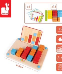 Drewniana układanka Nauka liczenia z serii Essentiel rozwija u dziecka wiele kluczowych umiejętności, m.in. liczenie, dodawanie, rozróżnianie kolorów i długości, koncentrację, spostrzegawczość i cierpliwość.