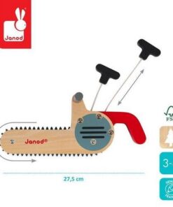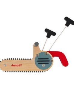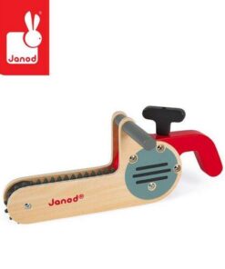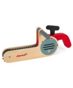 Drewniana piła łańcuchowa z serii Brico’kids francuskiej marki JANOD to idealny prezent dla małego majsterkowicza. Kształtem doskonale imituje swój „dorosły” odpowiednik, posiada łańcuch z silikonu, linkę rozruchową, której pociąganie sprawia, że narzędzie wydaje typowe dla piły dźwięki, a bezpieczne ostrze porusza się, oraz parę poręcznych uchwytów. Zabawka wspomaga rozwój zdolności manualnych dziecka, precyzję ruchów i koncentrację, stymuluje też wyobraźnię i zachęca do tworzenia historii oraz odgrywania sytuacji, znanych z obserwacji dorosłych.