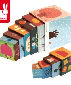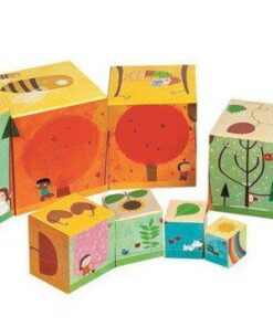 Na ściankach klocków znajdują się pięknie ilustrowane obrazki ze zwierzętami, roślinami, owocami i warzywami, charakterystycznymi dla każdej pory roku.