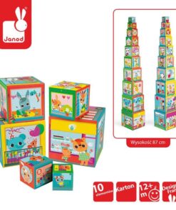 Piramida Przyjaciele w mieście francuskiej marki JANOD składa się z 10 klocków wykonanych z najwyższej jakości kartonu. To doskonała zabawka dla Twojego dziecka już od pierwszego roku życia.