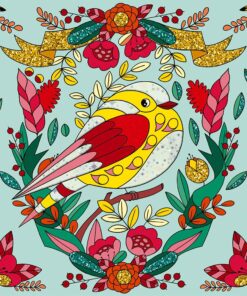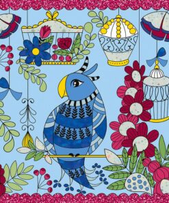 Zestaw kreatywny Brokat i blask Ptaki zawiera 8 plansz-obrazków, przedstawiających barwne, kunsztowne ptasie ornamenty.
