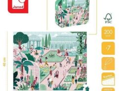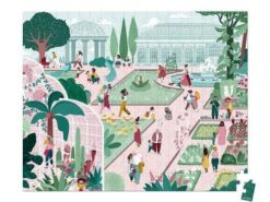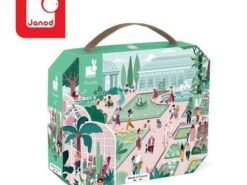 Zestaw puzzli w walizce Ogród botaniczny francuskiej marki JANOD składa się z 200 elementów, po ułożeniu tworzących piękny, bogaty w szczegóły obrazek, przedstawiający ludzi, spacerujących po ogrodzie botanicznym. Znajduje się tu m.in. fontanna, pawie, przeszklone pawilony, chłopiec z psem czy dziewczynka na wózku. Puzzle wykonane są z solidnego kartonu. Zaprojektowane i wyprodukowane we Francji. Zapakowane w estetyczną walizeczkę z rączką. Idealnie nadają się na prezent.