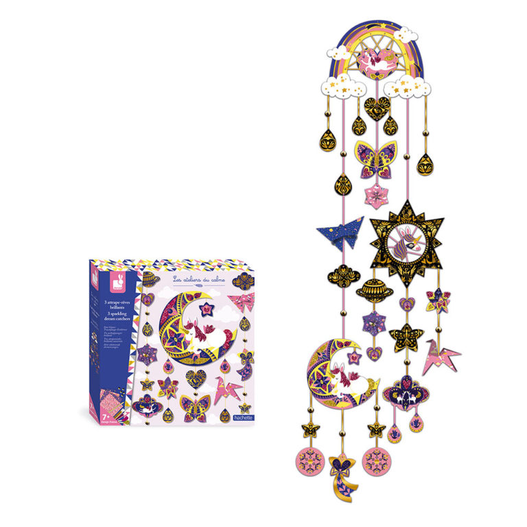 Tworzenie poszczególnych kształtów, nawlekanie koralików, jak też ozdabianie brokatem to dla dziecka długie godziny angażującej i jednocześnie uspokajającej zabawy. Gotowy łapacz snów może mierzyć aż 92 cm i stać się powodem do dumy i wspaniałą dekoracją dziecięcego pokoju. Zestaw zaprojektowano we Francji. Zapakowany jest w stylowe kartonowe pudełko. Idealnie nadaje się na prezent.