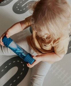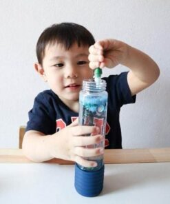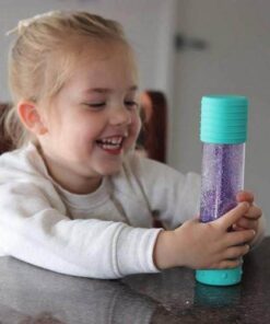 Butelka sensoryczna do samodzielnego złożenia, która pomaga dzieciom zapanować nad emocjami. Wprawianie jej w ruch i przyglądanie się temu, co dzieje się w jej wnętrzu uspokaja, wycisza i pozwala maluchom wyregulować oddech. Rodzice i terapeuci cenią sobie takie narzędzie w nauce skupienia i koncentracji. Producent przewidział możliwość zakupu wielu nietuzinkowych wzorów wypełnień.