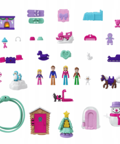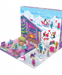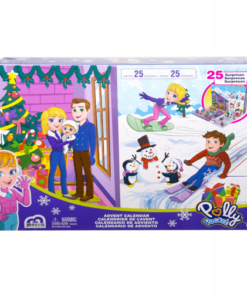 Przygotuj się na sezon świąteczny z Kalendarzem adwentowym Polly Pocket. Kalendarz adwentowy Polly Pocket z motywem zimowej rodzinnej zabawy ma niespodzianki na 25 dni (łącznie 34 elementy do zabawy). Pierwszego dnia dzieci odpakowują wyjątkowy prezent, a przez następne 24 dni odkrywają codziennie nową niespodziankę! Wśród prezentów są mikrolalki rodziny Pocket, pojazdy zimowe, zabawkowe przysmaki, akcesorium do noszenia dla dzieci, konik, piesek husky, króliczek, dwa pingwinki i inne akcesoria idealne do przeżywania niezwykłych zimowych przygód. Opakowanie jest ozdobione rozkładaną zimową scenerią, która poszerza możliwości zabawy. Możesz też ustawić je jako świąteczną dekorację. Dzieci pokochają odliczanie dni do świąt z tym Kalendarzem adwentowym z niespodziankami. Kolory i elementy dekoracyjne mogą się różnić. Lalki nie stoją samodzielnie. To wspaniały prezent świąteczny dla dzieci od 4 roku życia.