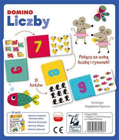 „Domino. Liczby” to gra Kapitana Nauki, która łączy dobrą zabawę z rozwojem podstawowych umiejętności matematycznych. Dziecko ma okazję przeliczać najróżniejsze obiekty, łącząc liczbę z obrazkiem. Kafelki można układać w rzędzie lub wymyślać różne układy. W domino można bawić się w pojedynkę lub z innymi graczami, wówczas kafelki losuje się i układa naprzemiennie.