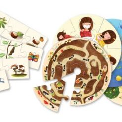 Gra edukacyjna Logika (3 – 7 lat) to idealna propozycja dla ciekawych świata przedszkolaków, którzy uwielbiają odkrywać tajemnice przyrody, układać puzzle i układanki oraz rozwiązywać zagadki. Zestaw zawiera 8 układanek 6-elementowych w kształcie koła, które zaznajamiają z porami dnia i roku oraz różnymi gatunkami zwierząt, oraz 8 układanek 2- i 3-elementowych przedstawiających przeciwieństwa oraz związki przyczynowo skutkowe.