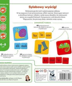Gra “Sylaba do sylaby” to klasyczna układanka obrazkowa, rozwijająca umiejętność czytania dzięki analizie i syntezie sylabowej. W zestawie znajduje się bogaty materiał wyrazowy, a zabawa z kolorowymi żetonami angażuje zmysły dziecka, wspomagając naukę czytania.
