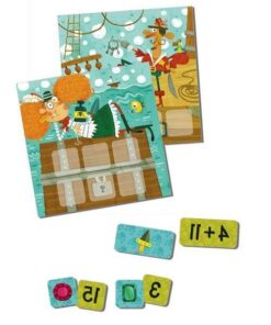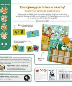 „Piraci” to prosta i wciągająca gra matematyczna dla przedszkolaków i dzieci wczesnoszkolnych, ćwicząca umiejętność dodawania i odejmowania w zakresie 1–20 oraz rozwijająca pamięć, koncentrację i myślenie logiczne.