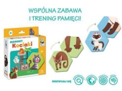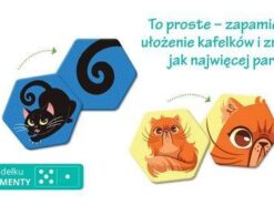 Memory Kociaki to gra, która przypadnie do gustu najmłodszym miłośnikom domowych pupili. Rozgrywki idealnie łączą interesujący dla dziecka temat z treningiem pamięci, spostrzegawczości i koncentracji oraz rozwojem wyobraźni.