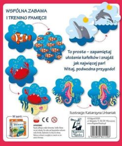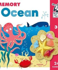 MEMORY OCEAN z serii Kapitan Nauka to świetny sposób na wspólną zabawę i doskonały trening pamięci. Składa się z 24 elementów i jest przeznaczone dla dzieci od trzech lat. Piękne ilustracje, narysowane przez Katarzynę Urbaniak są dodatkową atrakcją i zachętą do gry.