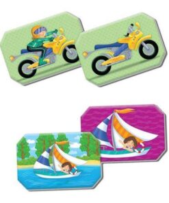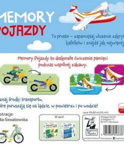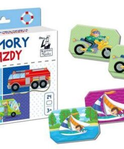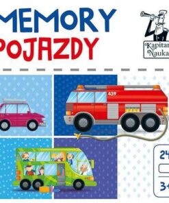 „Memory Pojazdy” to szybka, prosta i wciągająca gra, która polega na zapamiętaniu ułożenia zakrytych kafelków i znalezieniu jak najwięcej par. Zestaw zawiera 24 kafelki, na których przedstawiono środki transportu, które poruszają się na lądzie, w powietrzu i po wodzie.
