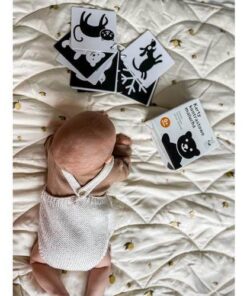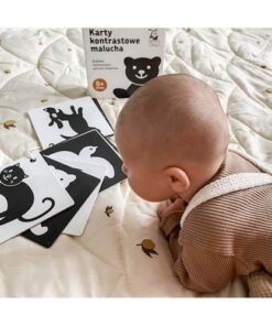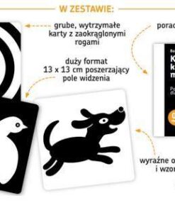 Na dużych kartach o wymiarach 13 x 13 cm znajdują się 24 obrazki i wzory, które maluszki uwielbiają oglądać, gdyż dobrze widzą kontrastowe kontury.