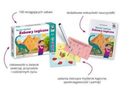 Zestaw Rysuję i zgaduję. Zabawy logiczne (4–7 lat) zawiera różnorodne zadania ćwiczące myślenie logiczne, m.in. uzupełnianie sekwencji, klasyfikacja obiektów ze względu na kolory, kształty i wielkość, porządkowanie przedmiotów w kolejności za pomocą ciągów liczbowych i czasowych, rysowanie możliwych tras przejścia w labiryntach, uzupełnianie tabeli według wzoru czy gra w kółko i krzyżyk.