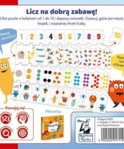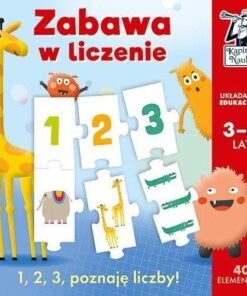 „Zabawa w liczenie” to kolorowa układanka edukacyjna dla przedszkolaków, z którą będą doskonalić liczenie w zakresie 1–10. Dzieci liczą zwierzęta i kropki, szukają cyfr i liczb na obrazkach oraz uczą się stosować pojęcia „mniej”, „więcej”, „tyle samo”, a przy okazji rozwijają myślenie logiczne, spostrzegawczość oraz wyobraźnię przestrzenną.