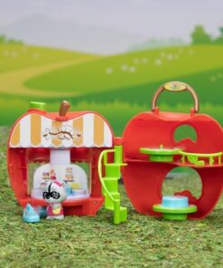 - Zestaw zawiera: Cukiernię Słodkie Jabłuszko ze schodami i wysuwanym blatem z kasą, dwa ciasta, dwa stoliki, jedno zwierzątko.