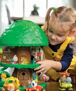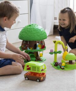Nowość od producenta Żyrafki Sophie, zestaw Klorofil Magiczne Drzewo zawiera: drzewo domek, 2 zwierzątka, samochodzik, 2 łóżeczka, stolik, 4 krzesła, kanapa, fotel. Montaż zabawki wymagany jest przez osobę dorosłą. Opakowanie zawiera instrukcję. Zabawka dla dzieci w wieku 18 miesięcy +.