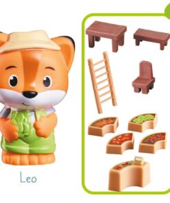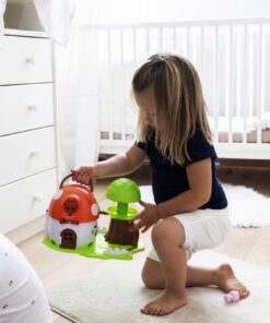 Zestaw zawiera: domek Muchomorek, jedno zwierzątko, drabinkę, 4 skrzyneczki ze zbiorami, ladę, krzesło, ławkę, stół. Montaż zabawki wymagany jest przez osobę dorosłą. Zabawka dla dzieci w wieku 18 miesięcy +. Zalecamy przetarcie powierzchni zabawki wodą z mydłem i wilgotną ściereczką.