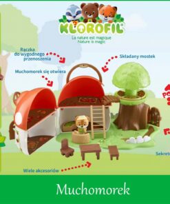 - Przenośny domek – sklep w kształcie muchomorka z otwieranym drzewem.