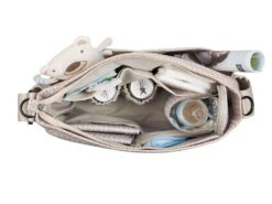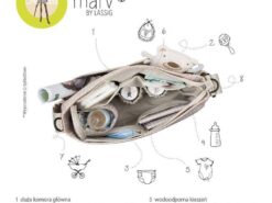 - system kieszeni wewnętrznych, w tym: zapinana na suwak wodoodporna kieszeń na mokry śliniak czy ubranko, dwie większe przegródki, przedzielone rzepem, po którego odpięciu powstaje jedna spora kieszeń, oraz dwie mniejsze przegródki wykończone gumką – doskonałe na słoiczki z obiadem lub deserem;