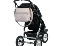 Można ją mocować na ramie wózka lub nosić na pasku, na ramieniu.