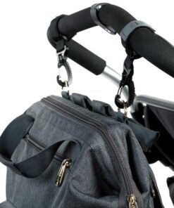 - dwa uchwyty (karabińczyki) z rzepami do mocowania torby na ramie wózka;