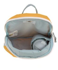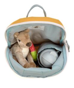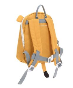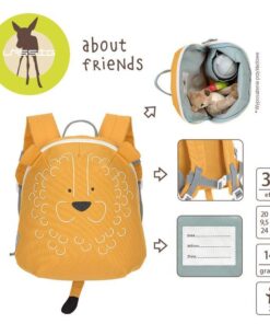 Wyjątkowo uroczy plecaczek 3D w kształcie lwa niemieckiej marki LASSIG. Funkcjonalny, lekki i wygodny, idealny dla maluchów już od 2. roku życia, do przedszkola i na krótkie wycieczki. Lew ma piękny żółtopomarańczowy kolor, uszka, malowaną grzywę i pyszczek oraz długi ogon. Dość przestronna komora główna zapinana jest na suwak, posiada wewnętrzną kieszeń na butelkę z napojem oraz etykietkę z wizytówką, na której można zapisać imię dziecka i numer kontaktowy rodzica. Plecak uszyto z wysokiej jakości, trwałych materiałów, tylna ścianka jest lekko wzmocniona, ale nadal miękka w kontakcie z plecami dziecka. W górnej części znajduje się uszko do zawieszenia plecaka, np. na haczyku w szatni. Dość szerokie, grubsze i miękkie ramiączka zapewniają wygodę noszenia. Z przodu, na klatce piersiowej dodatkowo wyposażone są z w stabilizujące i odciążające plecy zapięcie na zatrzask – jego wysokość, podobnie jak długość ramiączek, można regulować i na bieżąco dopasowywać do wzrostu dziecka. Uszko, paski oraz ułatwiające dziecku samodzielne zapinanie sznureczki przy suwakach mają kolor bladoniebieski. Materiał plecaka łatwo się czyści i jest odporny na wilgoć.