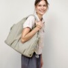 - wiele kieszeni zewnętrznych, w tym: 4 jakby ukryte pomiędzy kieszenią główną a ramionami torby, w jednej z nich znajdziesz przypięty na zatrzask brelok na klucze, w innej – mniejszą przegrodę, która zapina się na rzep – w sam raz na telefon;