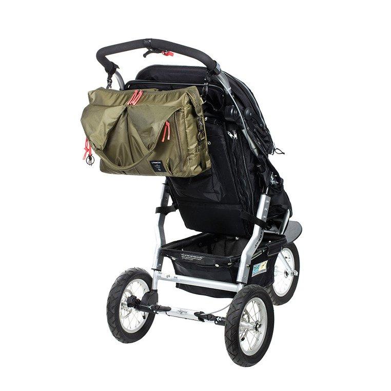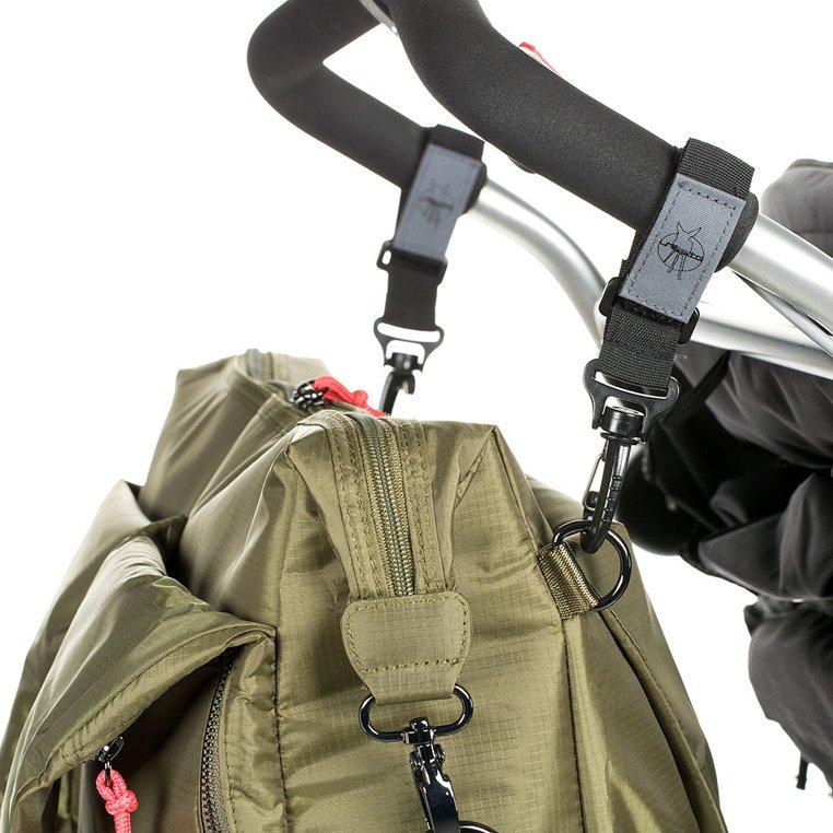 • dwa uchwyty z rzepami do mocowania torby na ramie wózka;