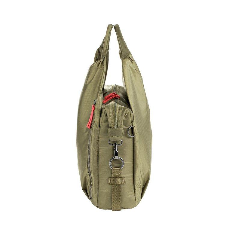 • miękki, szeroki pasek z tkaniny w kolorze torby, do noszenia na ramieniu;