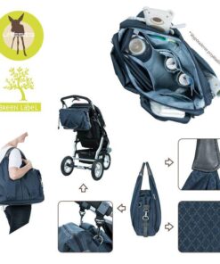 – wiele kieszeni wewnętrznych: duża, zapinana na zamek i wodoodporna, w której bezpiecznie ulokujesz poplamioną koszulkę czy śliniak i mniejsza na rzep – na ubranko na zmianę lub ukochany kocyk; dwie mniejsze przegródki wykończone gumką – doskonałe na słoiki z deserem lub obiadem – dodatkowo usztywnione i wyjmowane, bo przypięte do wewnątrz na zatrzaski; otwarta kieszonka na dołączoną do torby, poręczną, składaną matą do przewijania, w kolorze torby; oraz kieszeń z „okienkiem”, idealna na wilgotne chusteczki – umożliwia wyjmowanie ich bez wyciągania całego opakowania;