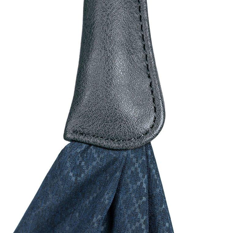 – solidne wykończenia z popielatej skóry i metalu: paski, rączki, metki, uchwyty do wózka i dodatkowego paska, rzemyk z medalionem z logo marki;