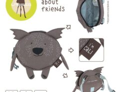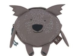 Wyjątkowo urocza torba listonoszka mini – nerka 3D w kształcie wombata niemieckiej marki LASSIG. Funkcjonalna, lekka i wygodna, idealna na dziecięce skarby, a także jako pierwsza torebeczka lub portfelik. Wombat Cali ma piękny brunatny kolor, charakterystyczne uszy, długie łapki i białe futerko, namalowane na tkaninie. Saszetka jest okrągła, zapinana na suwak i wyposażona w bladoniebieski, regulowany pasek, zapinany na nieuwierający zatrzask oraz taki sam sznureczek przy suwaku, który ułatwia dziecku samodzielne zapinanie. Uszyta z wysokiej jakości, trwałych materiałów, łatwych do czyszczenia i odpornych na wilgoć. Na zewnątrz znajduje się też metka z imieniem zwierzaczka.