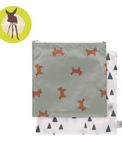 Zestaw dwóch torebek na przekąski niemieckiej marki LASSIG przyda się na drugie śniadanie do szkoły czy przedszkola, podczas podróży, spacerów czy wycieczek. Idealne np. na kanapki, ciastka, orzechy, chrupki, pokrojone warzywa czy owoce. Torebki są zapinane na suwak, lekkie, poręczne i wytrzymałe. Wykonane z wodoodpornego i łatwego w czyszczeniu tworzywa. Pełne rozpięcie brzegu ułatwia ich napełnianie, wyjmowanie jedzenia i mycie. Mają optymalny wymiar 17 x 18 cm, z łatwością mieszczą się do plecaka, torebki czy bocznej kieszonki. Kolor: biała w ciemnoniebieskie trójkąty + jasno oliwkowa w multiprint z liskiem w kolorze terakoty.