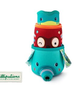 Kubeczki da się włożyć jeden w drugi, a największy z nich wyposażony jest w rączki-uchwyty. Zabawka jest perfekcyjnie wykończona, z dbałością o każdy szczegół i w pełni bezpieczna dla dziecka. Rozwija sprawność motoryczną i koordynację ręka-oko.