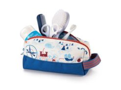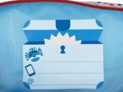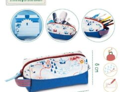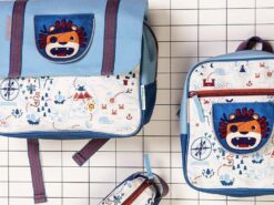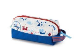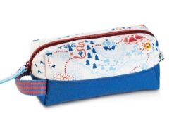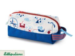 Urocza i poręczna kosmetyczka – piórnik z kolekcji Lew Jack belgijskiej marki Lilliputiens. Funkcjonalna i lekka, idealna do przedszkola czy szkoły, jak również na krótkie wycieczki czy dłuższe wyjazdy. Pomieści niezbędne przybory higieniczne lub plastyczne dziecka. Ma podłużny kształt, ciemny niebieski spód i niebanalną grafikę z motywami mapy skarbów. Zapinana jest na kontrastowy brązowo-bordowy suwak. Posiada wygodny uchwyt do przenoszenia czy zawieszenia, np. na haczyku w szatni. Wewnątrz znajduje się wizytówka, na której można zapisać imię dziecka i numer kontaktowy rodzica. Kosmetyczkę uszyto z wysokiej jakości materiałów, miękkich, łatwych do czyszczenia i odpornych na wilgoć. Jest perfekcyjnie wykończona, z dbałością o każdy szczegół i w pełni bezpieczna dla dziecka.