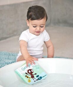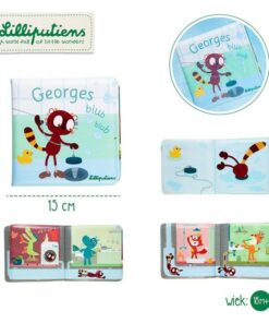 Książeczka do kąpieli z kolekcji Lemur George belgijskiej marki Lilliputiens, wykonana z miękkiego, łatwego do czyszczenia i szybkoschnącego materiału. Opowiada o niezwykłej podróży George’a, którą odbywa on rurami wodociągów po wskoczeniu do odpływu swojej wanny. Lemur obserwuje jak każde zwierzątko robi coś związanego z wodą: lisiczka Alice bierze prysznic, lew Jack myje zęby, krokodyl Anatol robi pranie, nosorożec Marius zmywa naczynia, żyrafa Zia myje samochód, a jednorożec Louise siedzi na toalecie! Dzięki lekturze książeczki dziecko dowiaduje się do czego jest nam potrzebna woda i jak możemy ją oszczędzać, rozwija spostrzegawczość i pobudza wyobraźnię. Książeczka jest perfekcyjnie wykończona, z dbałością o każdy szczegół i w pełni bezpieczna dla dziecka.