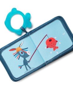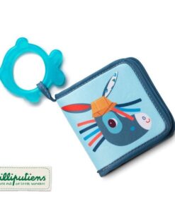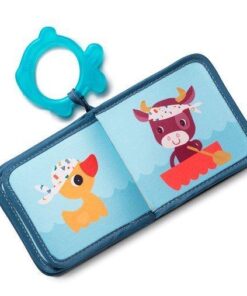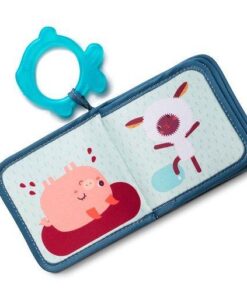Niezwykła książeczka do kąpieli Osiołek Ignace z kolekcji Farma belgijskiej marki Lilliputiens, wykonana z miękkiego, łatwego do czyszczenia i szybkoschnącego neoprenu. Opowiada o wodnych przygodach różnych zwierzątek z farmy: świnka Simon pływa na materacu, owieczka Yvon ostrożnie wchodzi do kałuży, osiołek Ignace łowi ryby, a pływający po jeziorze kaczor Gaston spotyka krówkę Rosalie, która pływa łódką. Książeczka jest lekka i ma poręczny rozmiar. Ma niebieski kolor z ciemniejszą lamówką, na jej okładce znajduje się długouchy osiołek Ignace z bujną grzywą i w zabawnym kapeluszu, a przy tasiemce zamocowany jest giętki, również niebieski gryzak w kształcie rybki z bezpiecznego tworzywa EVA. Zabawka jest perfekcyjnie wykończona, z dbałością o każdy szczegół i bezpieczna dla dziecka. Rozwija spostrzegawczość i pobudza wyobraźnię, a dzięki gryzakowi przynosi ulgę w trudnym okresie ząbkowania.