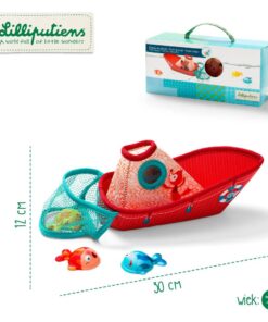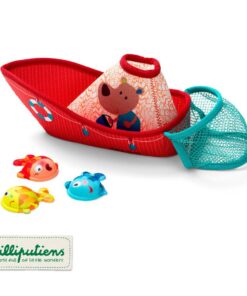 Kuter rybacki z siecią to idealna zabawka do kąpieli. Jest wykonany z miękkiego, łatwego do czyszczenia i szybkoschnącego neoprenu. Po jego obu stronach znajdują się wizerunki charakterystycznych dla marki zwierzątek – Niedźwiadka Cesara i Lisiczki Alice.