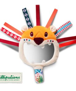 Bezpieczne i giętkie lusterko stanowi szeroki uśmiech charakterystycznego dla marki zwierzątka – pomarańczowego lwa Jacka. Zabawka jest równocześnie grzechotką. Ma uszka i krótkie włosy z barwnych tasiemek i wydaje szeleszczący dźwięk przy pocieraniu. Pluszowy uchwyt jest łatwy do utrzymania w małych rączkach.