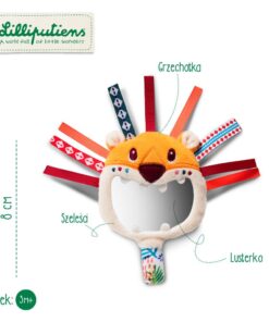 Grzechotka z lusterkiem z kolekcji Lew Jack to miękka aktywizująca zabawka dla niemowląt.