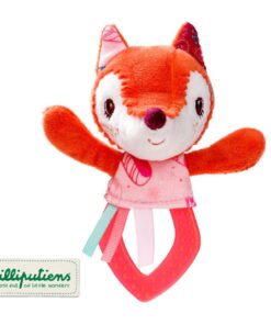 Ma postać uroczej lisiczki, która potrząsana wydaje przyjemne dla ucha dźwięki, a jej łapka szeleści przy pocieraniu.