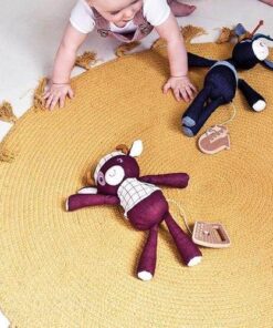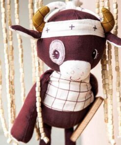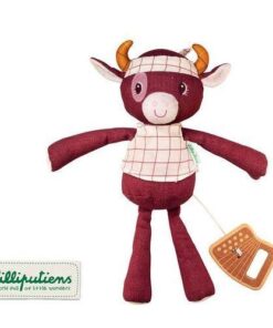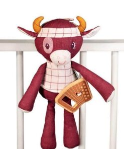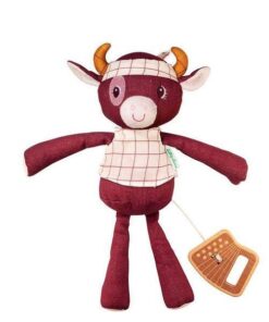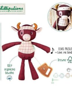 Duża przytulanka z pozytywką Krówka Rosalie z kolekcji Farma belgijskiej marki Lilliputiens to wspaniały pierwszy przyjaciel maluszka. Jest idealna do tulenia, uspokajania i usypiania. Ma postać uroczej bordowej Krówki Rosalie, aż 30 cm wysokości i drewniany akordeon, który stanowi jednocześnie uchwyt ukrytej wewnątrz pozytywki. Pociągniecie za instrument uaktywnia znaną, przyjemną dla ucha melodię utworu Elvisa Presleya „Love me tender”. Muzykująca Rosalie nosi jasny top w kratę, została uszyta z delikatnej bawełny organicznej, na głowie ma przepaskę, rogi i odstające uszy. Zabawka jest solidnie wykonana i bezpieczna. Wyposażona w troczki, które umożliwiają jej powieszenie przy łóżeczku czy wózku dziecka. Zaskakuje i pobudza dziecięcą wyobraźnię. Aktywizuje zmysł słuchu, pomaga w zasypianiu i wyciszaniu się.